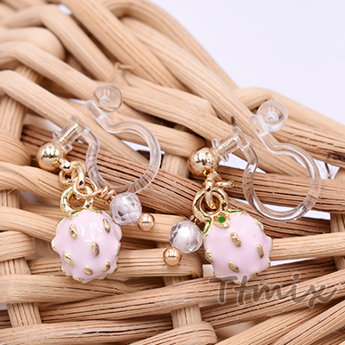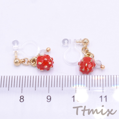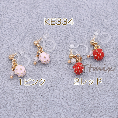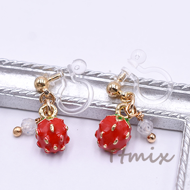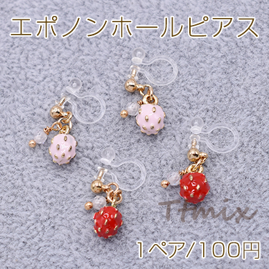 エポノンホールピアス 樹脂イヤリング 苺 天然石ビーズ【1ペア】