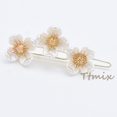 パッチン留め パール調フラワー 3連 ヘアピン ヘアアクセサリー【1ヶ】