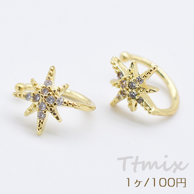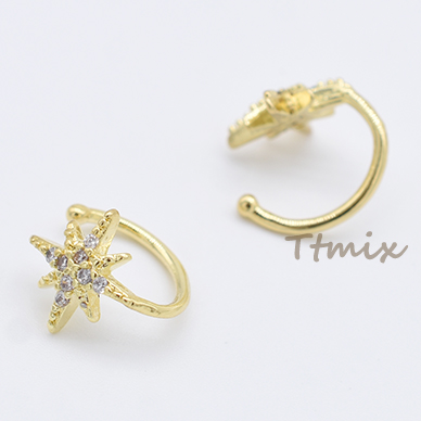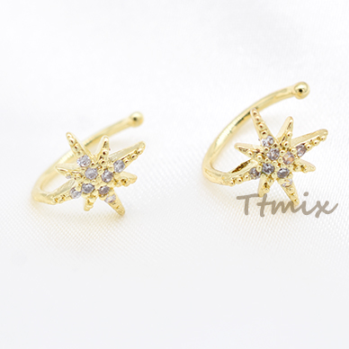 高品質イヤーカフ イヤーカフス 星 スター ジルコニア付き 片耳用 ゴールド【1ヶ】
