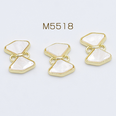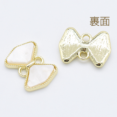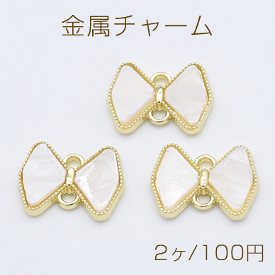 金属チャーム アクリル貼り コネクター リボン 2カン 11×15mm ゴールド/ホワイト【2ヶ】