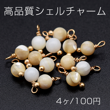 高品質シェルチャーム めがね留め ラウンド 4mm 1カン【4ヶ】