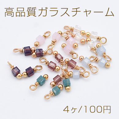高品質ガラスチャーム めがね留め キューブ 2.4×2.4mm 1カン【4ヶ】