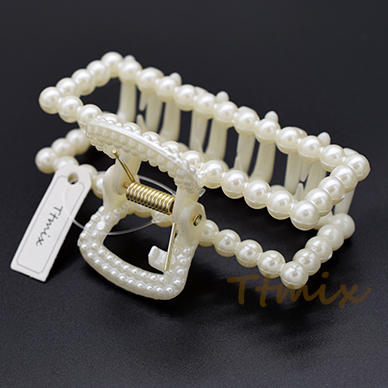 パール調バンスクリップ ヘアクリップ ヘアアクセサリー NO.3【1ヶ】
