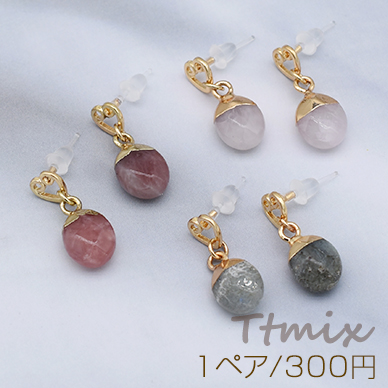 ハート型→合金製 チャーム→天然石、銅製 ピアスポスト→樹脂製 ピアスキャッチ→樹脂製