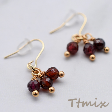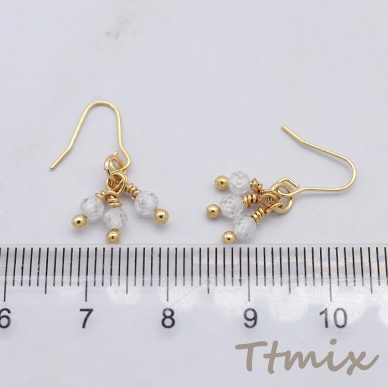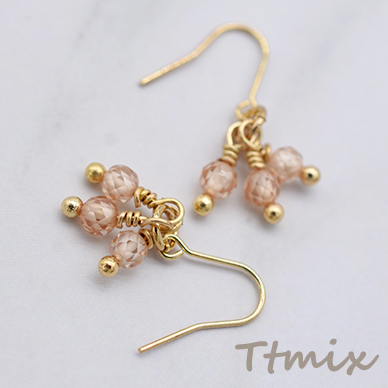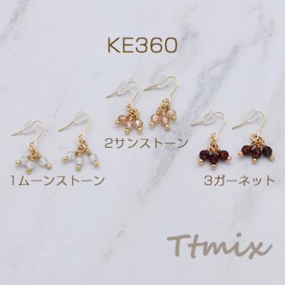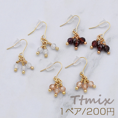 天然石ピアス 金属フックピアス ラウンドカット 3連【1ペア】