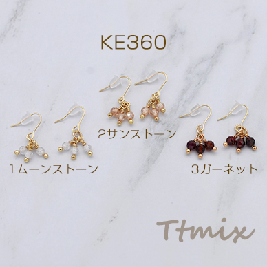 チャーム→天然石、銅製 ピアスフック→銅製 ピアスキャッチ→樹脂製