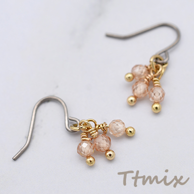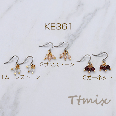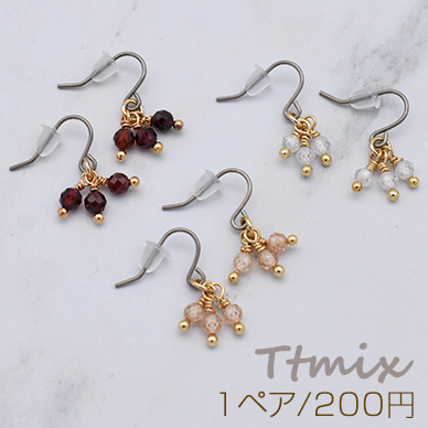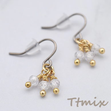 天然石チタンピアス チタンフックピアス ラウンドカット 3連【1ペア】