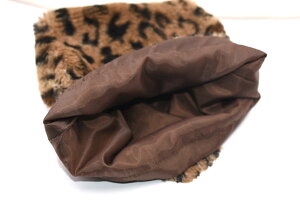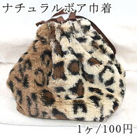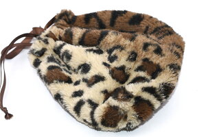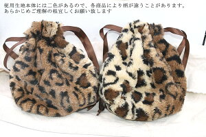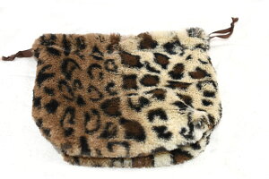ナチュラルボア巾着 ふわふわファー付き 豹柄 20×22cm【1ヶ】 ※ネコポス単品1点まで