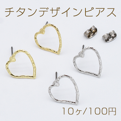 チタンデザインピアス ハート型 14×15mm チタンキャッチ付き【10ヶ】