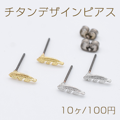 チタンデザインピアス 羽 フェザー 3×10mm チタンキャッチ付き【10ヶ】