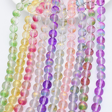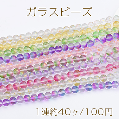 ガラスビーズ グラデーション 箔入り 丸玉 10mm【1連】