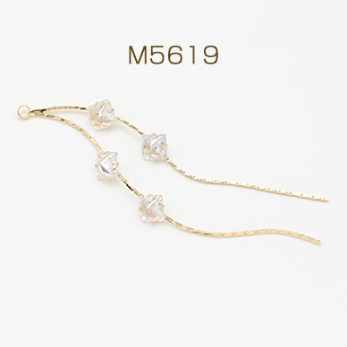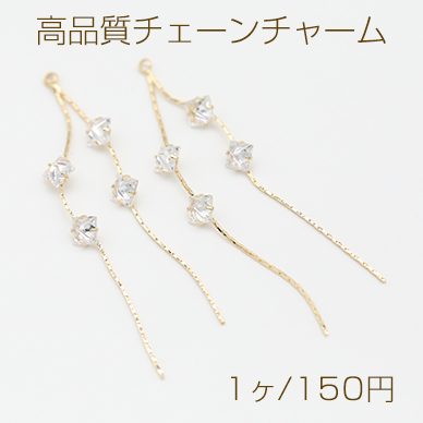 高品質チェーンチャーム 2連 ジルコニア付き 1カン 70mm ゴールド【1ヶ】