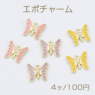 エポチャーム 蝶 パステルカラー 1カン 13×15mm ゴールド【4ヶ】