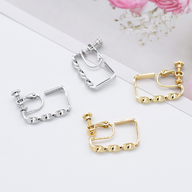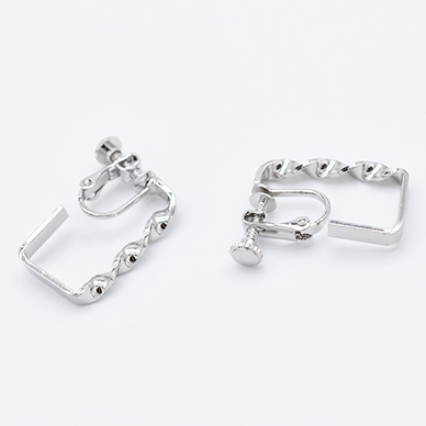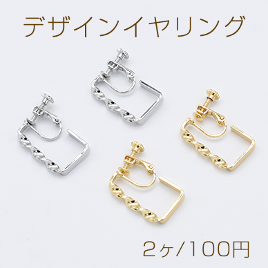 デザインイヤリング ネジバネ式 ツイスト スクエア フープ 15×23mm【2ヶ】