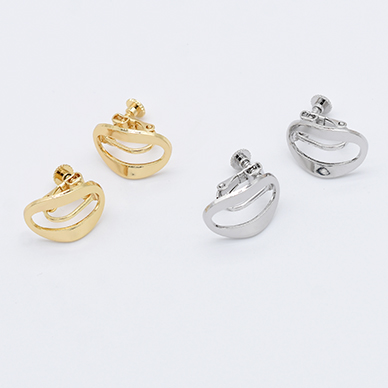 デザインイヤリング ネジバネ式 楕円形 14×18mm【2ヶ】