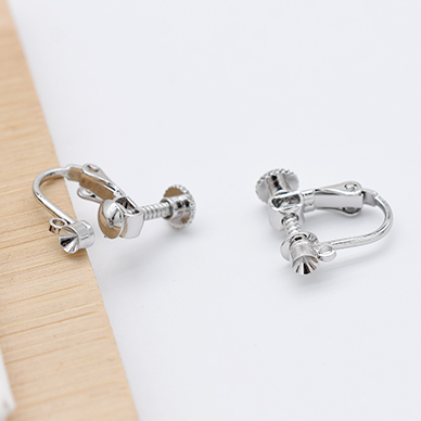 イヤリング金具 ネジバネ式 皿付き Vカットストーン 3mm 1カン【2ヶ】