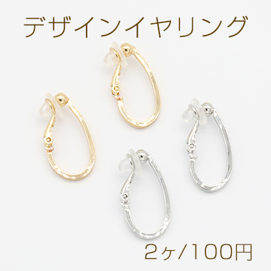 デザインイヤリング クリップ式 ゴム付 フープ 雫型 13×25mm【2ヶ】