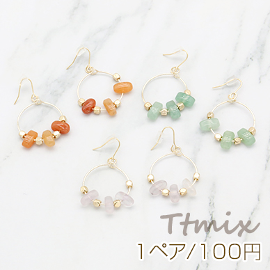 天然石ピアス 金属フックピアス フープ【1ペア】