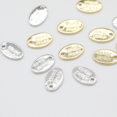 チャームパーツ ハンドメイドタグ メタルプレート オーバル 1穴 7×11mm【10ヶ】