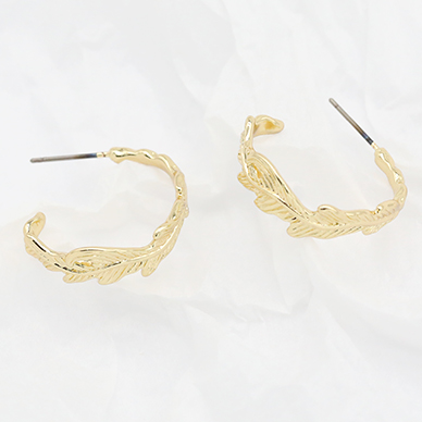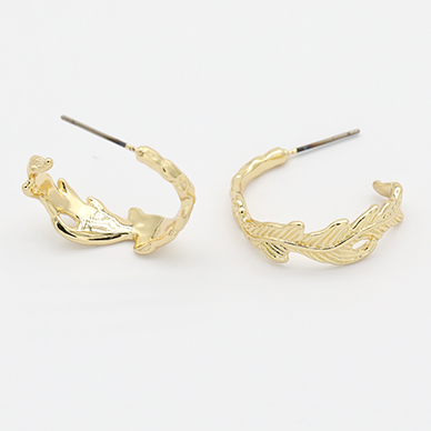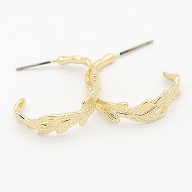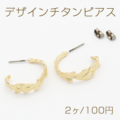 デザインチタンピアス Cフープ 羽 24×25mm ゴールド【2ヶ】