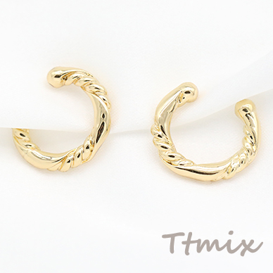 高品質イヤーカフ イヤーカフス ツイスト 14×16mm 片耳用 ゴールド【2ヶ】