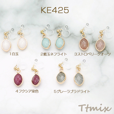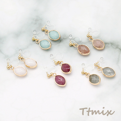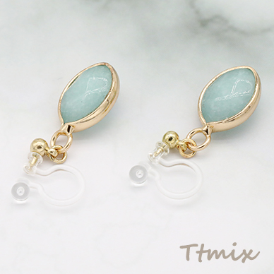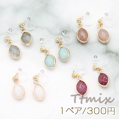 天然石ノンホールピアス 樹脂イヤリング オーバル【1ペア】