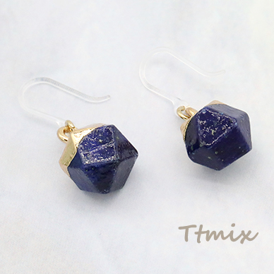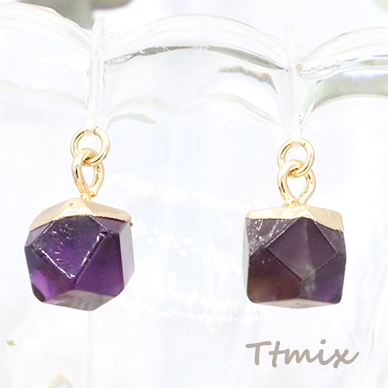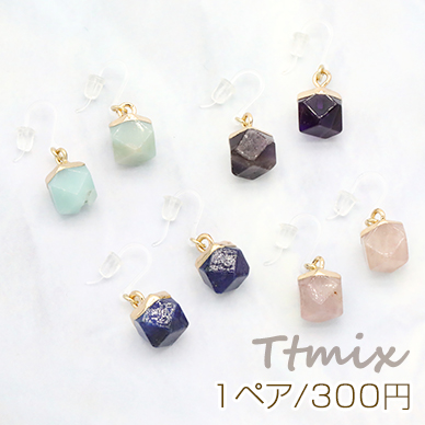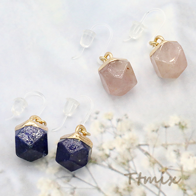 天然石樹脂ピアス 樹脂フックピアス 丸型多面カット【1ペア】