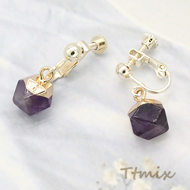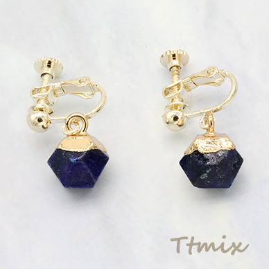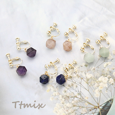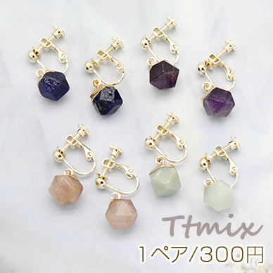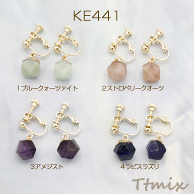 天然石イヤリング 4mm玉 ネジバネ式イヤリング 丸型多面カット【1ペア】