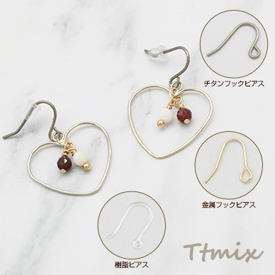 ピアスフック→チタン製、銅製、樹脂製