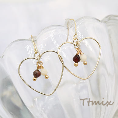 ハートピアス フープ シェル×アメジスト【1ペア】