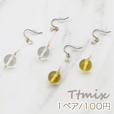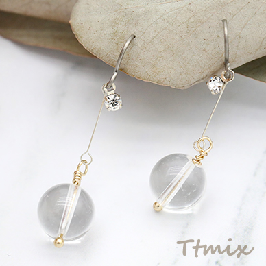 天然石チタンピアス チタンフックピアス ピアノ線 丸玉 10mm【1ペア】