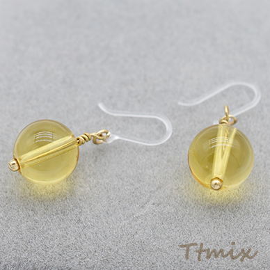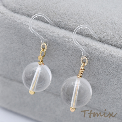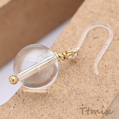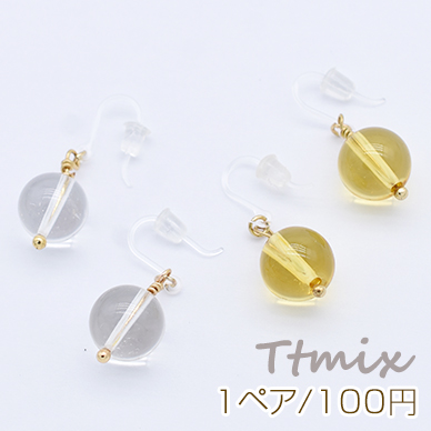 天然石樹脂ピアス 樹脂フックピアス 丸玉 10mm【1ペア】
