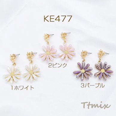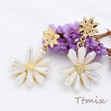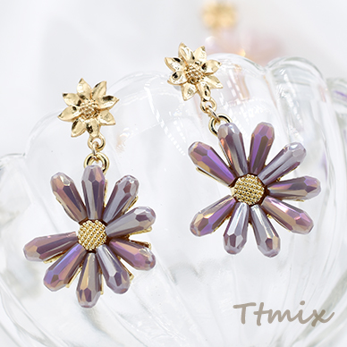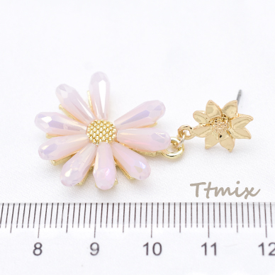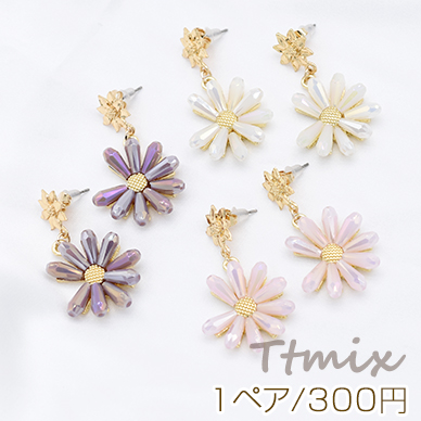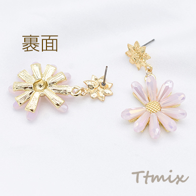 フラワーモチーフガラスピアス ポストピアス ゴールド【1ペア】