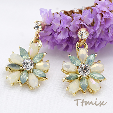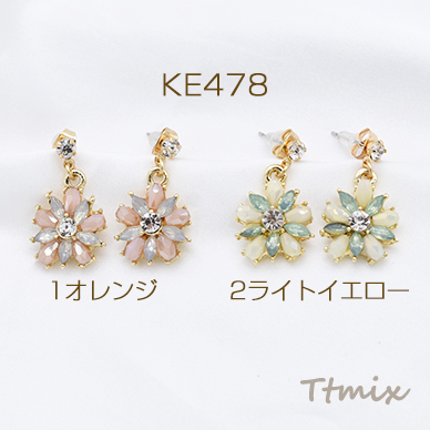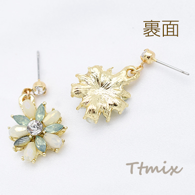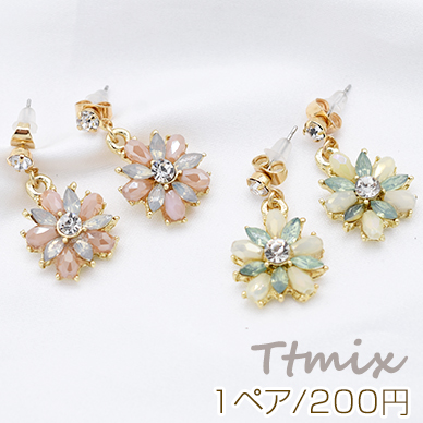 樹脂×ガラスピアス フラワー ポストピアス ゴールド【1ペア】
