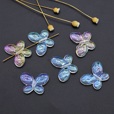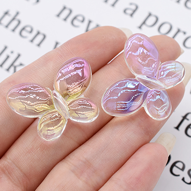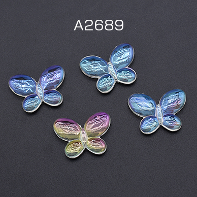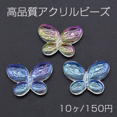 高品質アクリルビーズ 蝶 22×30mm クリア ABカラー【10ヶ】