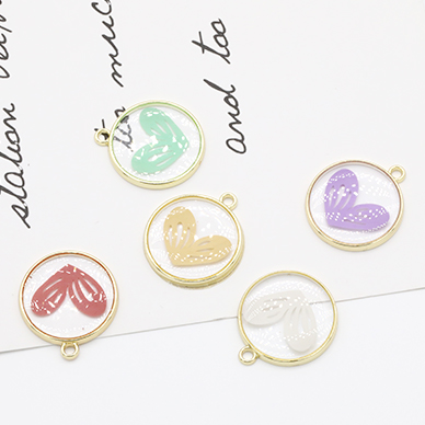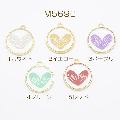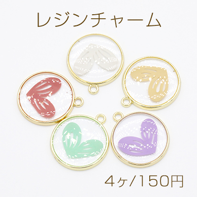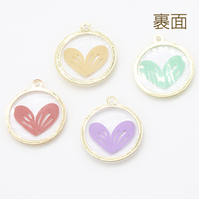 レジンチャーム 丸型 1カン ハート封入 20×23mm ゴールド【4ヶ】