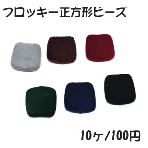 フロッキー正方形ビーズ 21×21mm アクリルビーズ ベロア調【10ヶ】