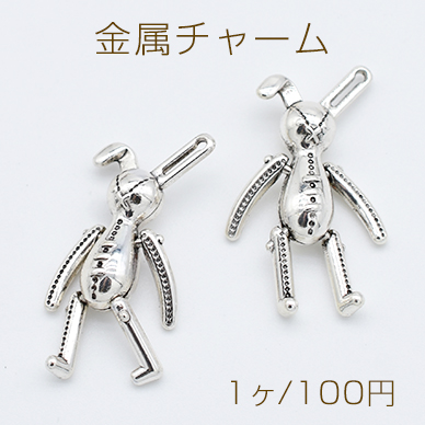 金属チャーム ラビット ウサギ うさぎ 14×32mm アンティークシルバー【1ヶ】