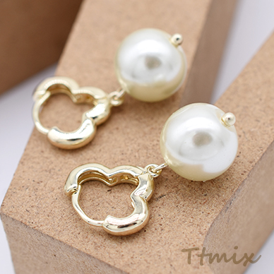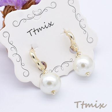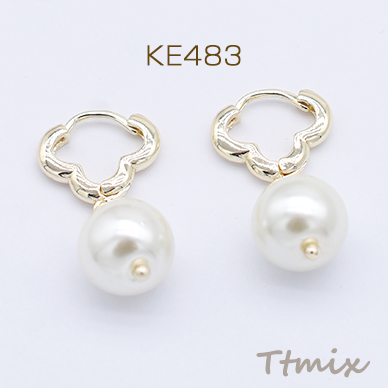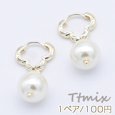 パール調ピアス 丸玉 10mm フープピアス ゴールド【1ペア】