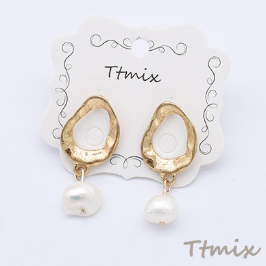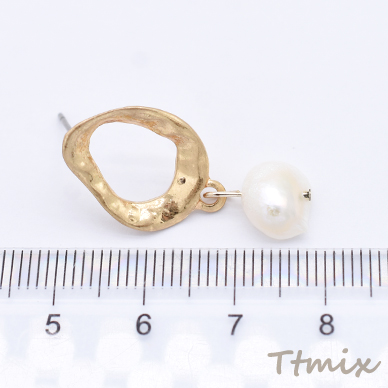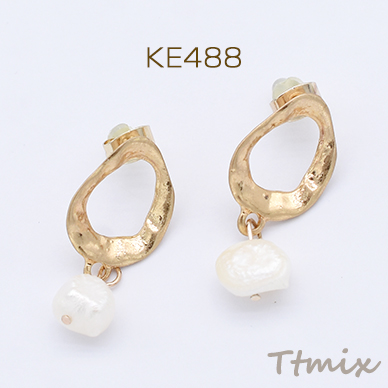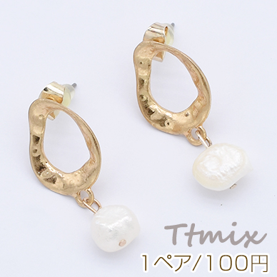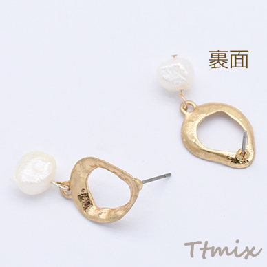淡水パールピアス 不規則型 ポストピアス マットゴールド【1ペア】