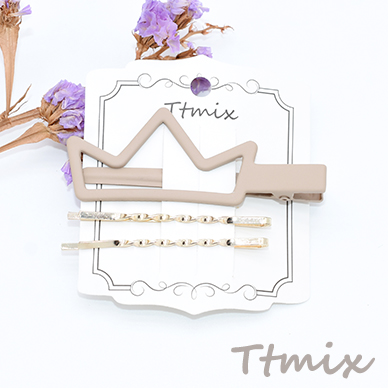 マットヘアクリップ 王冠 ヘアピン ヘアアクセサリー【3個セット】