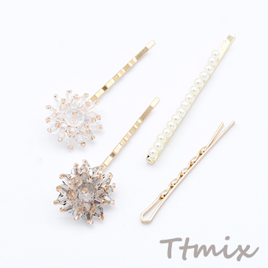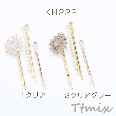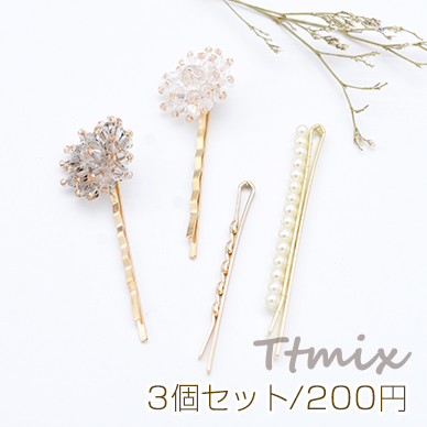 パール×ガラスビーズへアピン ヘアアクセサリー【3個セット】