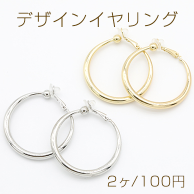 デザインイヤリング クリップ式 ゴム付 フープ 丸型 39mm【2ヶ】