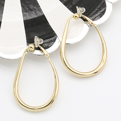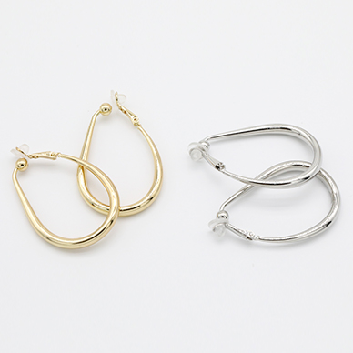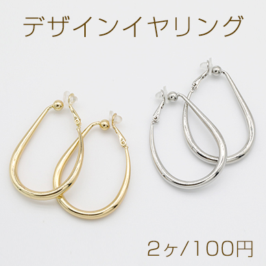 デザインイヤリング クリップ式 ゴム付 フープ 雫型 32×49mm【2ヶ】