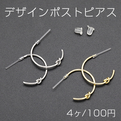 デザインポストピアス 樹脂 Cフープ 結び目 19mm【4ヶ】
