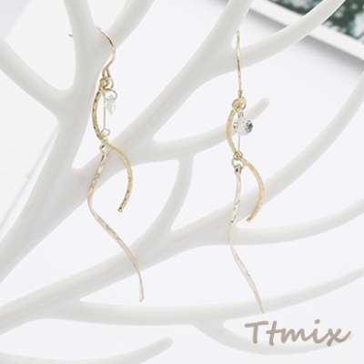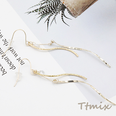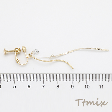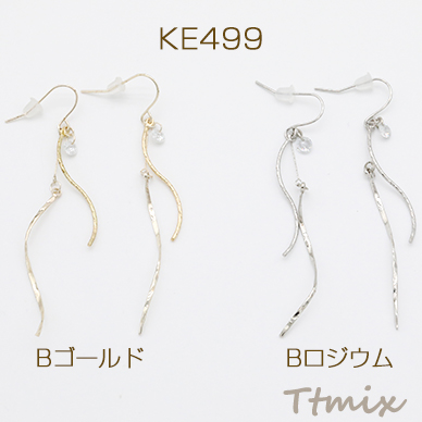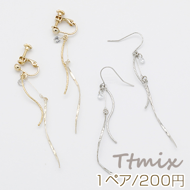 スティックピアス/イヤリング ウェーブ ジルコニア付き【1ペア】