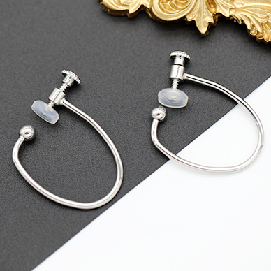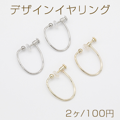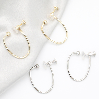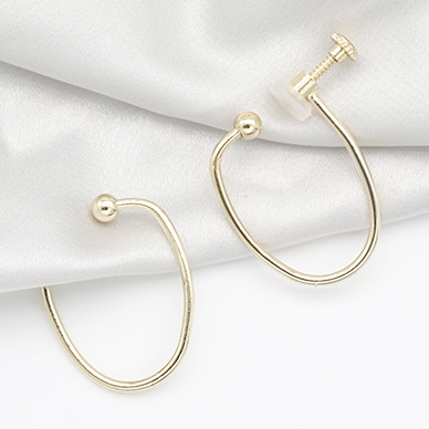 デザインイヤリング ネジバネ式 ゴム付 フープ オーバル 21×27mm【2ヶ】