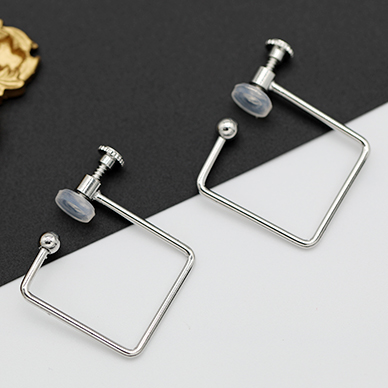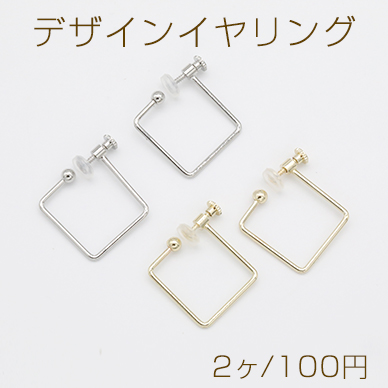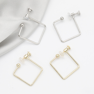 デザインイヤリング ネジバネ式 ゴム付 フープ 四角形 22×24mm【2ヶ】