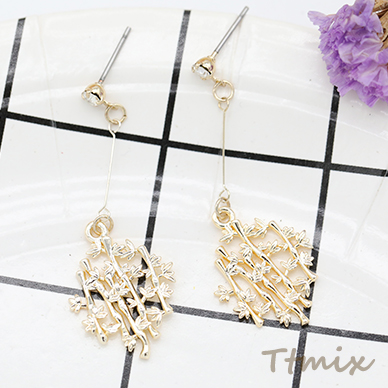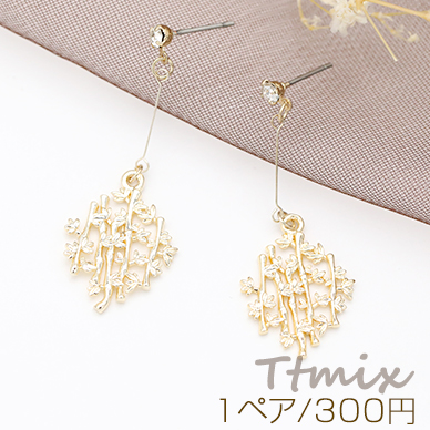 リーフピアス ピアノ線 ストーンポストピアス【1ペア】