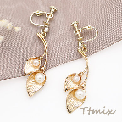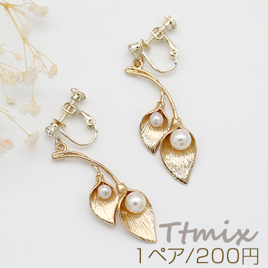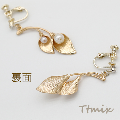 パールリーフイヤリング ストーン付きイヤリング【1ペア】